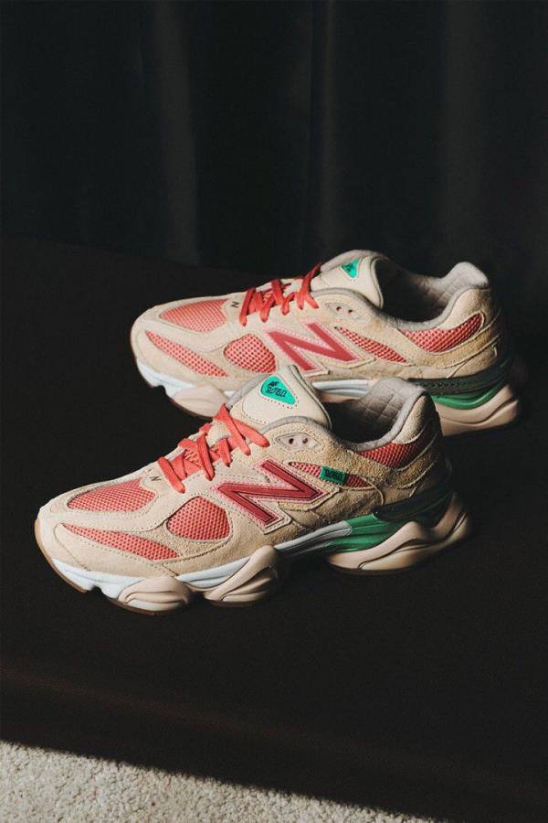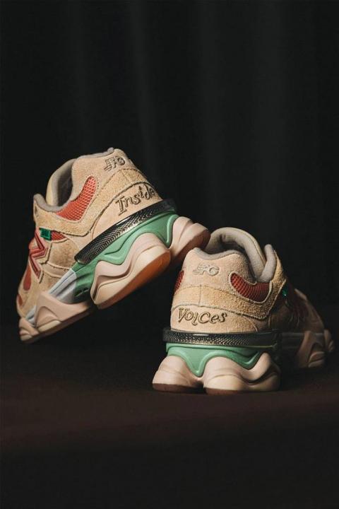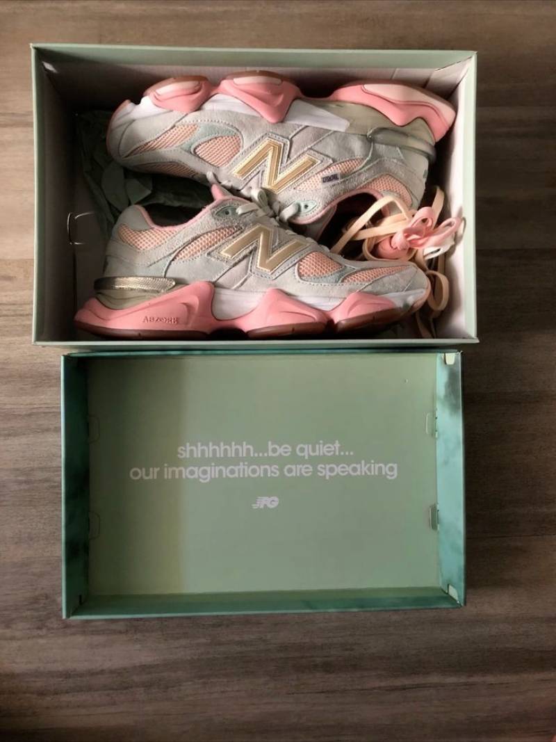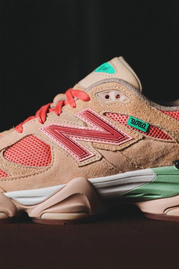 The Joe Freshgoods x New Balance 9060 'Baby Shower Blue' introduces a new silhouette as part of the 'Inside Voices' pack, the follow-up to the Chicago-based designer's 'Outside Clothes' collaboration from 2021. Inspired by New Balance's 990 series and classic running styles from the early 2000s, the sneaker utilizes an airy yellow mesh upper with a tonal 'N' logo and suede overlays in a pale aqua hue. Pastel pink accents land on the quilted collar lining and split ABZORB midsole, the latter reinforced by a podular outsole in grippy gum rubber. 'JFG' branding appears on the leather heel tab, while 'Inside Voices' is embroidered across the back heel of each shoe.